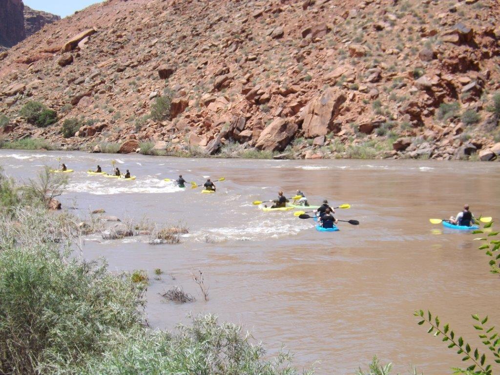 So the game is more like Water Polo played on Kayaks but Kayak Rugby just sounded better. Teams cannot travel with the ball and must pass it down the field until they can throw it and hit a buoy goal. It is an absolute blast!